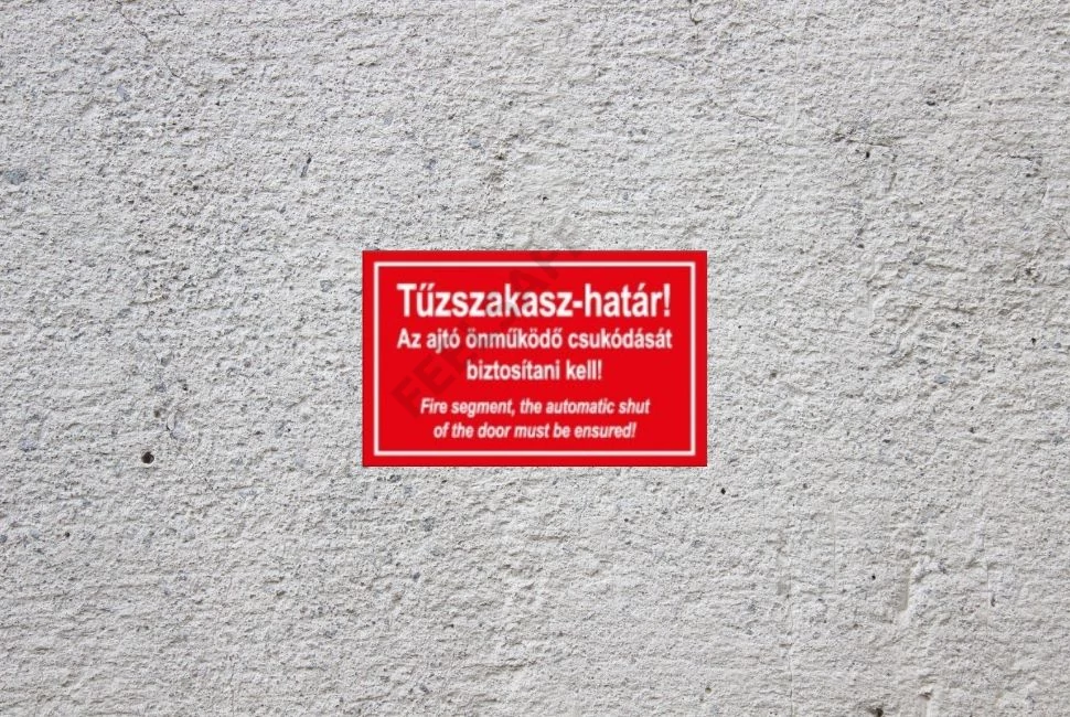 Tűzszakasz-határ Az ajtó önműködő csukódását biztosítani kell! (Két nyelvű.) 160 mm x 100 mm